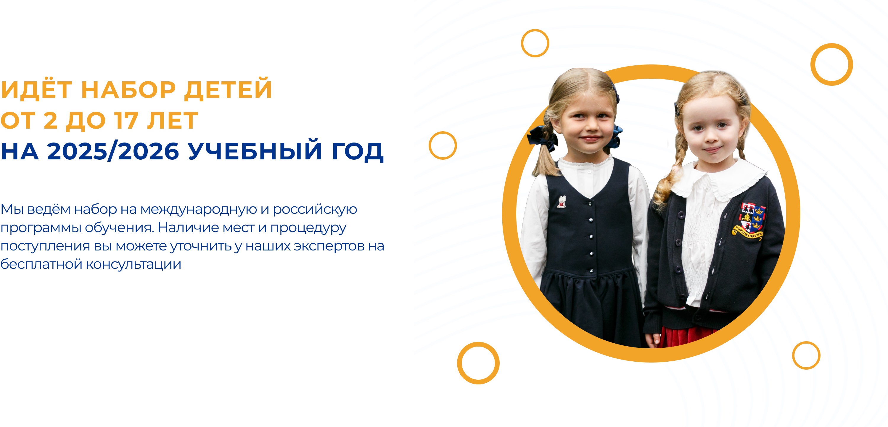 На Российском отделении дети в возрасте от 7 до 18 лет обучаются в соответствии с Федеральными государственными образовательными стандартами, с углубленным изучением английского с носителями языка.