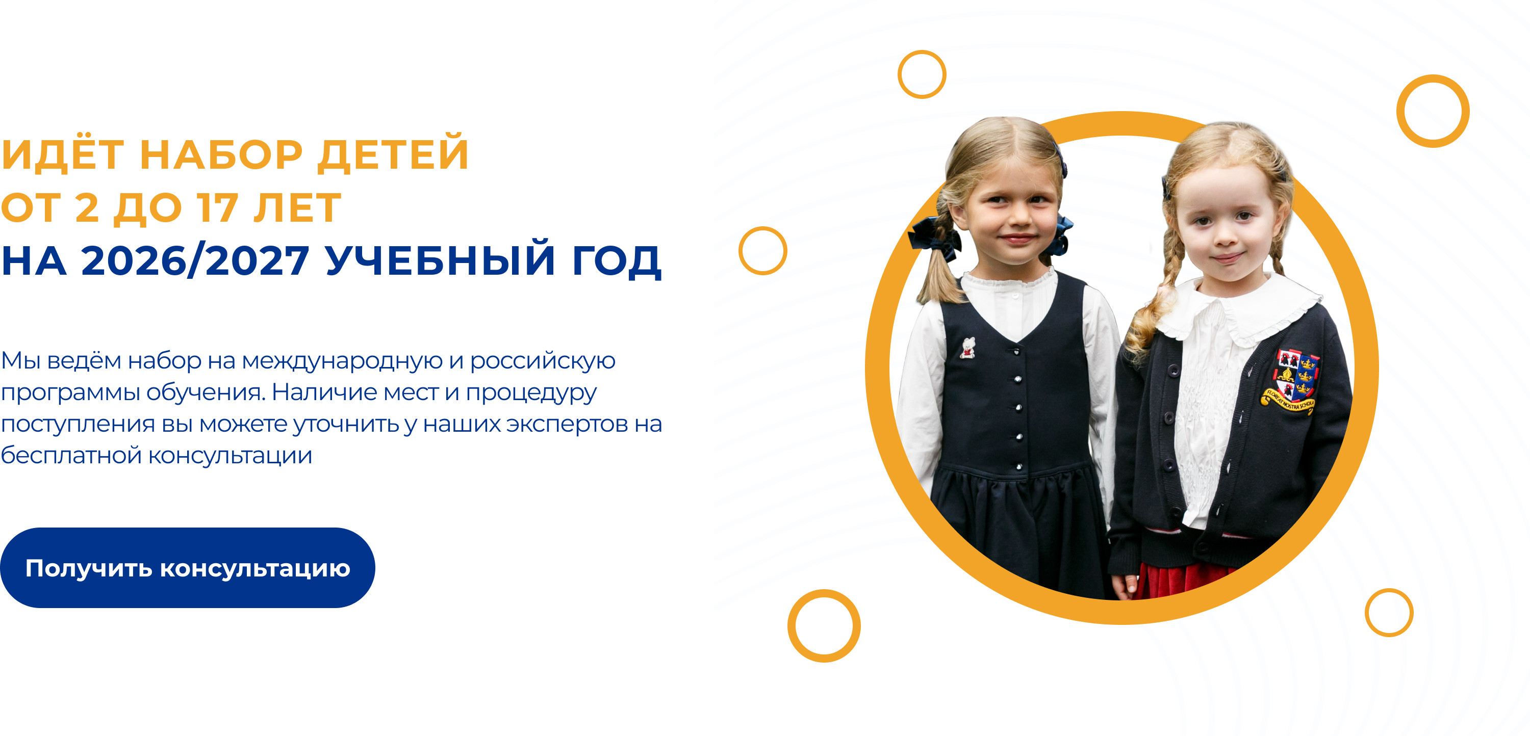 На Российском отделении дети в возрасте от 7 до 18 лет обучаются в соответствии с Федеральными государственными образовательными стандартами, с углубленным изучением английского с носителями языка.